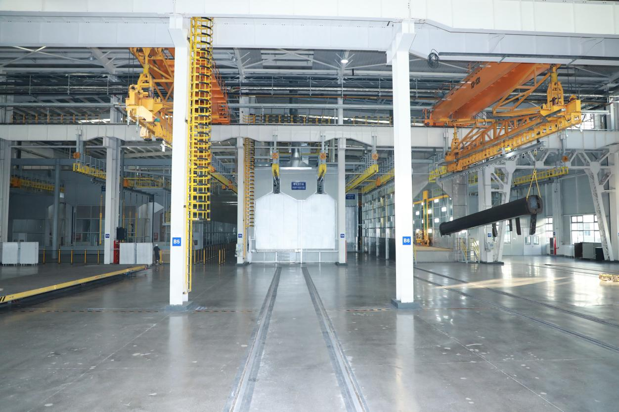 涂裝中心通過對標國內(nèi)先進裝備制造企業(yè),研判分析國家環(huán)保形勢、政策。以“機械化減人、智能化換人、智能化作業(yè)”為目標,以“設(shè)備、產(chǎn)線和產(chǎn)品自動化、數(shù)字化、智能化、綠色化;業(yè)務(wù)流程數(shù)字化、信息化”原則建設(shè),打造為國內(nèi)一流的重型裝備制造業(yè)涂裝中心為目標建設(shè),提升自動化作業(yè)率,實現(xiàn)噴砂自動化作業(yè)率≥96%,噴漆自動化作業(yè)率≥92%,作業(yè)人員由160人優(yōu)化為80人。提升涂裝設(shè)備綠色化、智能化水平,采取先進的噴粉、水性漆涂裝工藝,廢氣處理采用沸石轉(zhuǎn)輪+RTO處理工藝,達到廢氣污染防治要求,實現(xiàn)“超超低”排放要求。